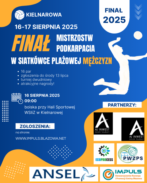 Zgodnie z regulaminem Mistrzostw, turniej zostanie rozegrany w dniach 16-17 sierpnia 2025 r. Ze względu na prace związane z budową Orlika przy boiskach w Błażowej, turniej został przeniesiony na obiekty przy Hali Sportowej WSIiZ w Kielnarowej.